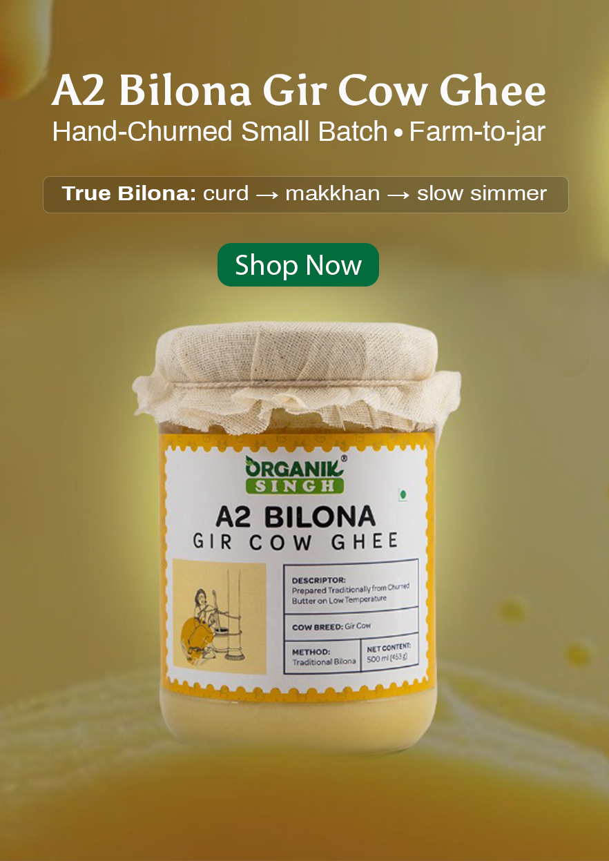 We follow time-honoured kitchen processes that Ayurveda respects—like Bilona ghṛita and kacchi ghani oils—paired with modern quality checks. We make everyday foods, not medicines, and we don’t offer therapeutic claims.