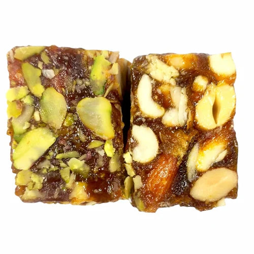 Enjoy this classic premium Dry Fruit & Dates Barfi that is made fresh for every order with 100% natural ingredients Almond, Cahsew nuts, Pistachio, Dates, & Gir Cow Ghee.