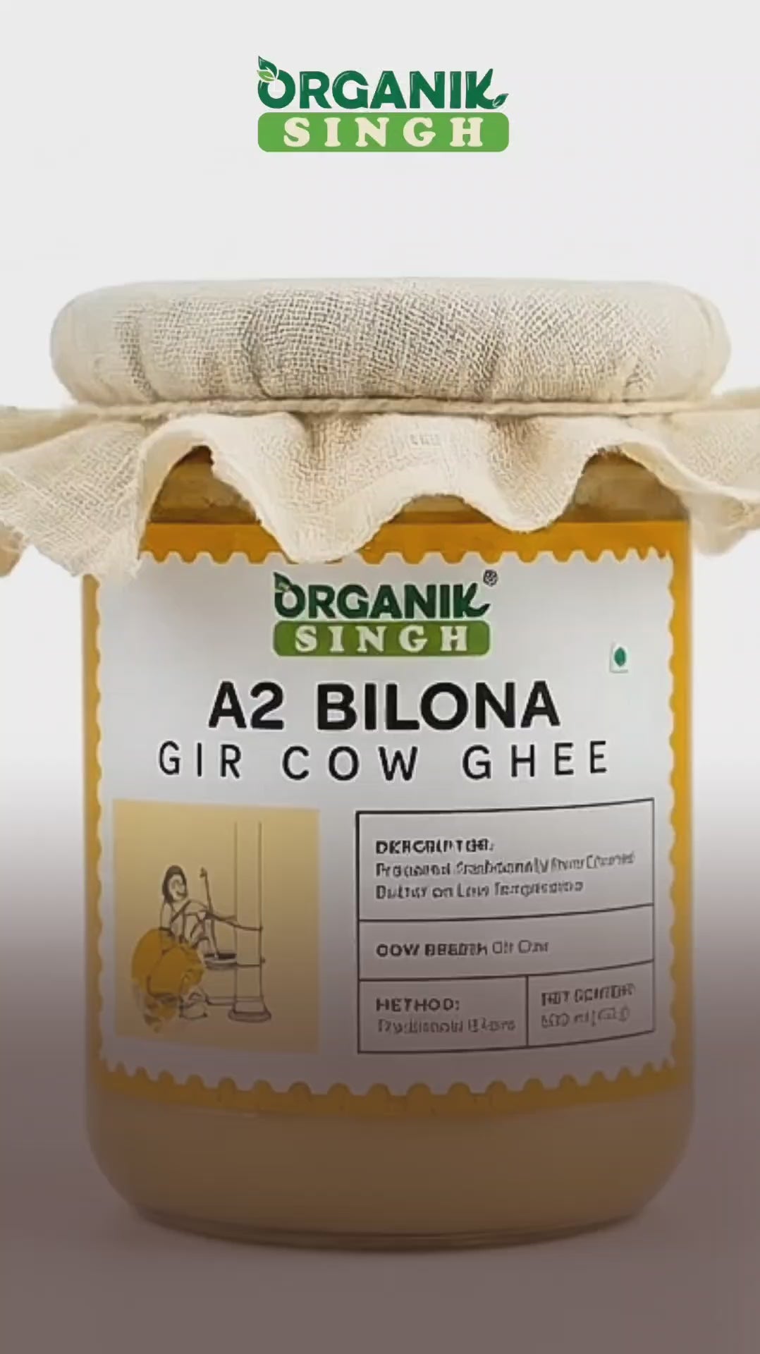 Organik Singh Gir Cow Ghee is purity personified. Sourced from forest-grazed, cruelty-free A2 Gir Cows, it’s meticulously made using the ancient Bilona method. This slow, low-heat process retains higher vitamins and beneficial fatty acids, yielding a rich, nutty flavor and distinct aroma. Purchasing this ghee directly supports tribal communities and ethical, sustainable dairy, bringing you a true Ayurvedic superfood with zero preservatives.